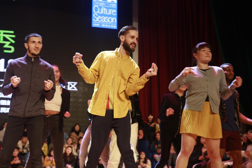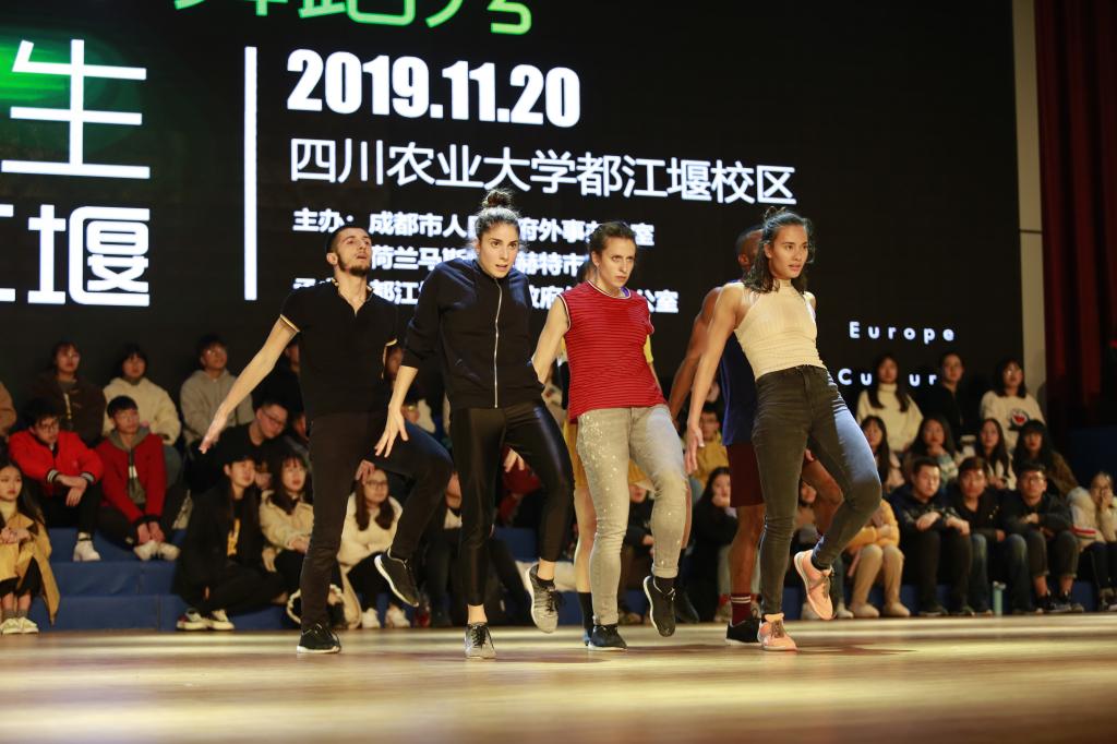 11月20日晚七点整,来自荷兰马斯特里赫特的青年舞蹈团体Sally Dance Company将他们在成都的首场舞蹈秀放在都江堰校区,给校区舞蹈爱好者们呈现了一场精彩纷呈的互动舞蹈秀。来自校区的500多名师生到场观看,一起体验了舞蹈艺术的魅力。
