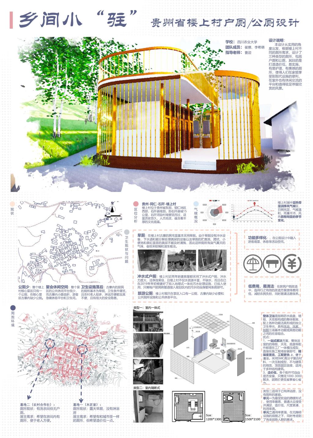 据悉,全国高等院校大学生乡村规划方案竞赛由中国城市规划学会乡村规划与建设学术委员会主办。贵州省国土资源厅、广东省住房和城乡建设厅、安徽省自然资源厅等作为支持方,为大赛提供各个竞赛单元的真实村落。作为本届新设置的竞赛单元,乡村户厕设计方案竞赛呼吁参赛团队关注各地乡村户厕,共同探寻适应地方实际需要的改造经验和设计思路。