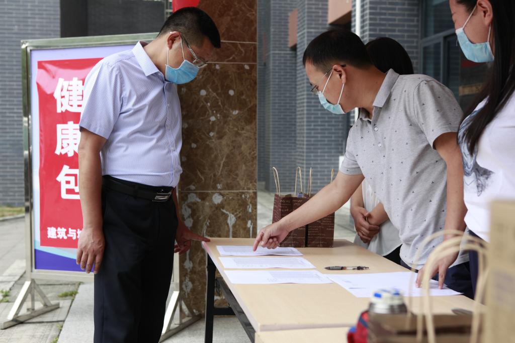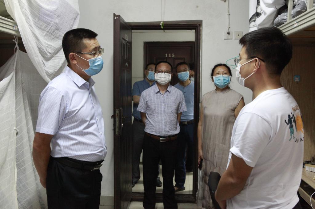 刘登才一行先后来到学生报到点、学院、教学楼、图书馆、食堂、学生公寓等地,详细了解同学们返校的具体情况,察看学生学习、就餐等情况。看到建筑与城乡规划学院建设管理系教工党支部教师党员正在为学生发放健康包时,他对老师们的用心工作表示赞赏。刘登才对其他奋战在一线的工作人员和学生志愿者也表示了亲切慰问,希望大家在做好工作的同时,做好个人防护。