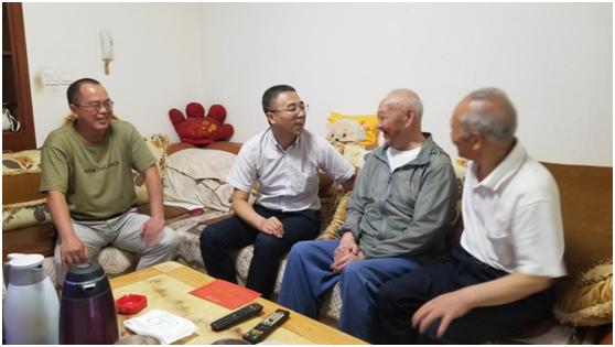 7月1日,暨中国共产党成立99周年之际,学校离退休党委书记冯未俊,都江堰校区机关离退休第一、二支部书记和校区离退办工作人员一同代表学校党委慰问校区离退休特困党员严美奎、彭海益两位同志,送去慰问金,同时与两位老同志亲切交谈,鼓励他们以健康、乐观、积极向上的心态安享晚年生活。
