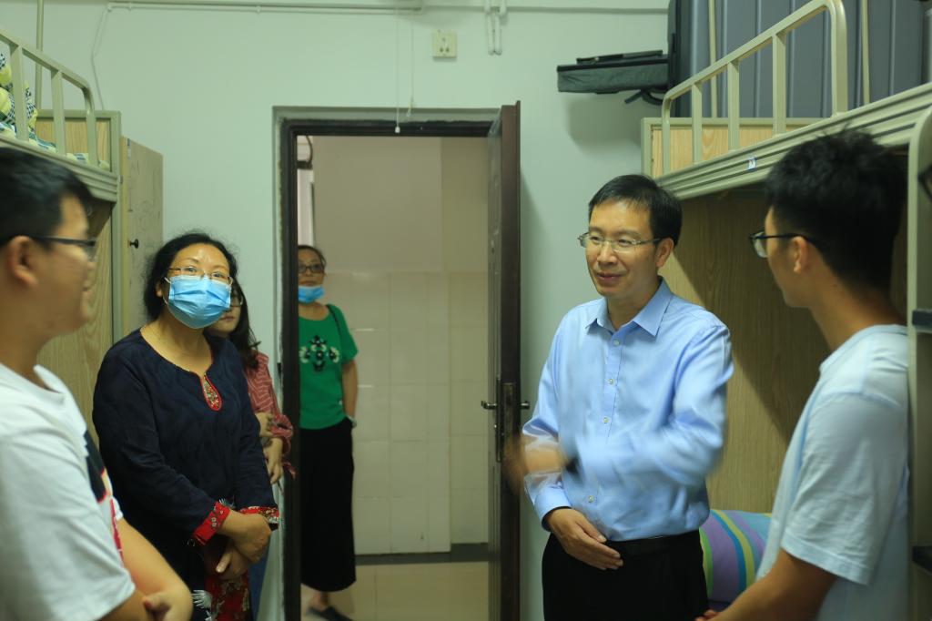 “你是什么专业呢?”、“家是哪里的?”、“来到都江堰适不适应呀?”朱占元一行先后来到各学院新生报到处、家长休息区、新生体检处、新生寝室等各个点位,询问了解报到进展、新生对学校是否满意及生活是否舒适等情况,“学校环境很好,一来就感受到了学校师生的热情关怀,孩子在这里我们很放心”,一名家长热情地说道。在与一名阿坝州深度贫困县免费定向生泽仁磋姆交谈时,了解到她在学习方面存在一定困难,朱占元勉励她尽快转变角色,定位好自身目标,多与老师同学交流,提高学习生活能力,并要求学院要在学习生活等方面对她进行一对一帮扶,帮助她尽快适应大学生活。在报到现场,朱占元还对奋战在迎新一线的关工委老师、学生志愿者等工作人员表示感谢。朱占元对学生寝室自助室、学习室、新生寝室也进行了查看。在学生宿舍外面,朱占元看到一对相拥而泣的母女,连忙走上前去询问,了解到家长舍不得孩子后,亲切地安慰母女俩,“把孩子交给我们你要放心,有困难及时和老师沟通,学校一定会尽全力为学生成长成才服好务”。