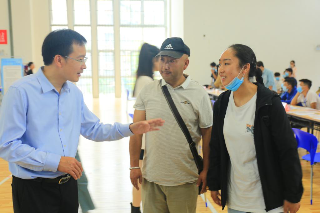 9月18日上午,学校副校长朱占元、都江堰校区班子成员及校区机关相关部门负责人来到迎新现场,亲切看望新生和家长,慰问迎新工作人员。