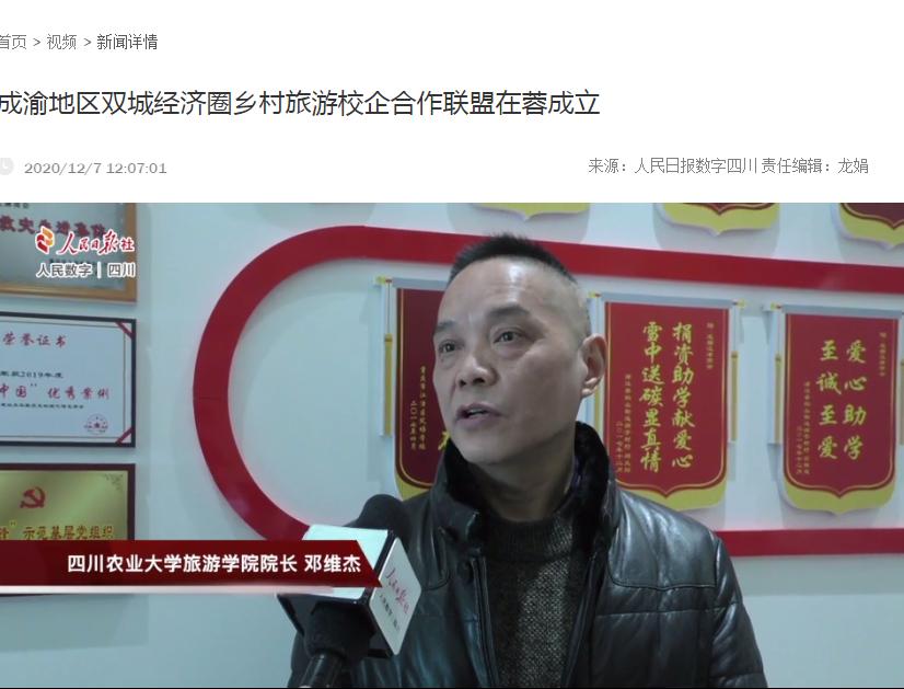 12月6日,“成渝地区双城经济圈乡村旅游校企合作联盟”(以下简称“联盟”)成立仪式暨项目研讨会在成都举行。我校旅游学院被聘为理事长单位,并将与“联盟”共建“乡村旅游产业研究院”。我校旅游学院邓维杰教授和西南大学经济管理学院魏鹏教授被聘为首届理事长。