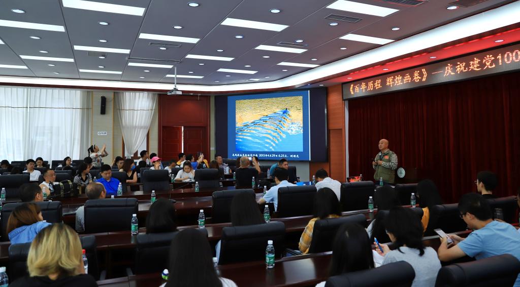 6月26日下午,都江堰校区在1114会议室举办“百年历程 辉煌画卷”庆祝建党100周年摄影讲座。讲座由著名摄影师刘国兴主讲,由都江堰校区和四川省企业文联等单位共同主办,吸引校区师生和摄影爱好者近200人到场聆听。