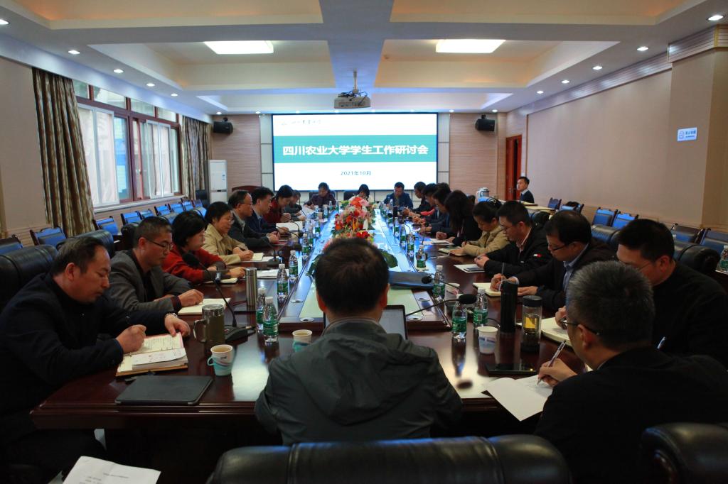 张强强调,现阶段新冠疫情依然严峻的形势下要落实好疫情防控措施,抓实抓细各项学生工作,继续做强川农大“以生为本”的学生工作品牌,进一步加强学生管理制度修订,以适应新时代发展的需要,同时要注重网络舆情的管控。会后,张强为各学院“心理辅导站”授牌,推动学校心理健康工作持续向好发展。