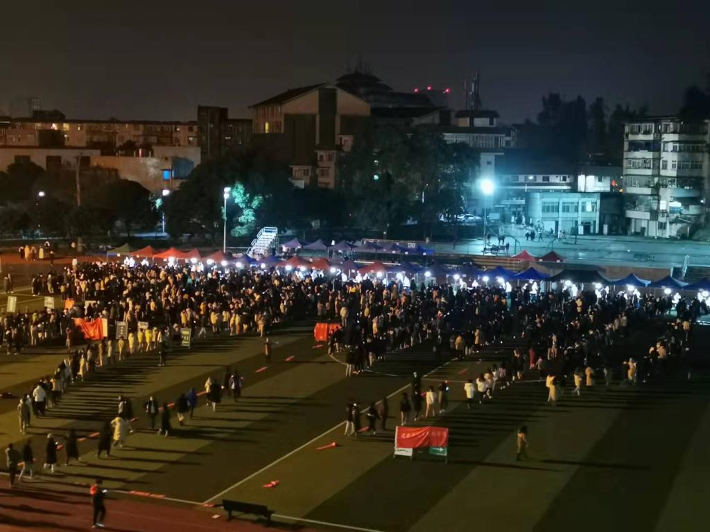 校区领导、学院领导、班主任、学工战线的老师们坚持值守,西餐厅和校园超市通宵营业做好后勤保障。凌晨2:30,从崇州市调度的200余名医护人员赶到校区开始核酸采样。都江堰市市委书记蒋蔚炜、市长张亚丹以及街道社区领导也来到采样现场,看望慰问医护人员、工作人员和校区师生,要求从严从实做好核酸检测工作,持续加大严防严控力度,全力阻断疫情传播风险,筑牢校园免疫安全屏障,确保师生平安。