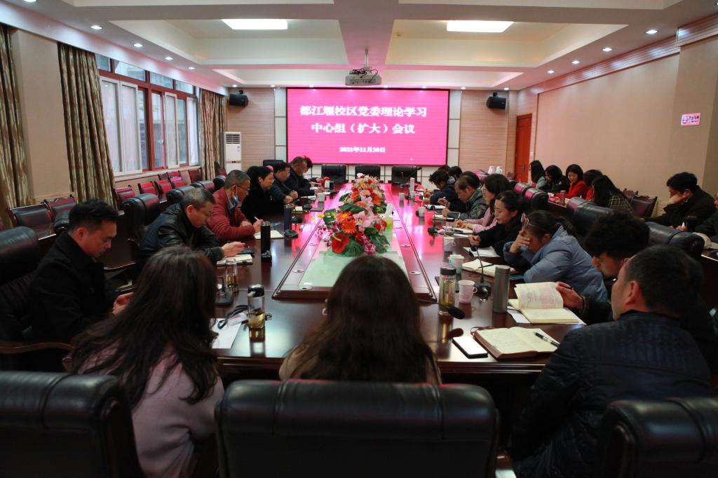 11月30日上午,都江堰校区党委理论学习中心组(扩大)会议在5304会议室召开,全体党委委员、科级领导干部参加。会议由校区党委副书记陈中桂主持。