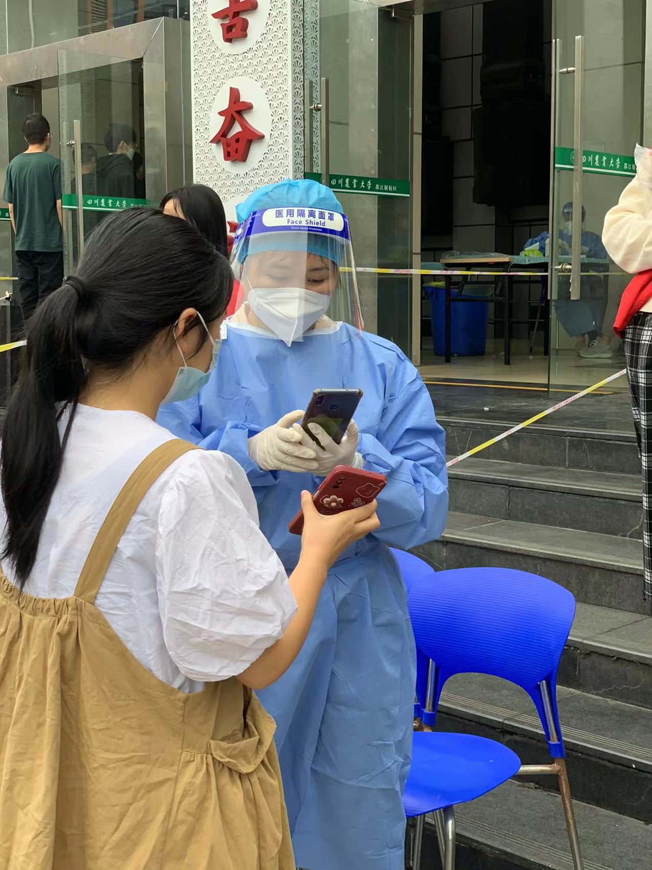 9月11日下午,正值中秋佳节,都江堰校区机关第二党支部主动请缨,以服务校区全员核酸检测为契机,开展了“坚守初心,抗疫有我”主题党日活动,以实际行动做好表率、当好榜样。在核酸检测现场,支部党员同志迅速进入工作状态,有条不紊地开展健康码查验、采样信息录入、秩序维护、现场引导等工作,确保参检人员严格落实有序排队、自觉防护等防疫事项,积极助力校区核酸检测工作有序高效推进。