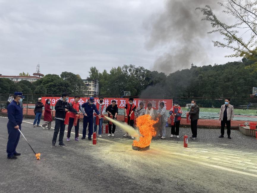 讲座结束后,全体参培人员到达指定场地进行了消防实战演练,重点对灭火器等消防器材的使用进行了详细的现场操作培训,部分师生代表有序进行了演练。