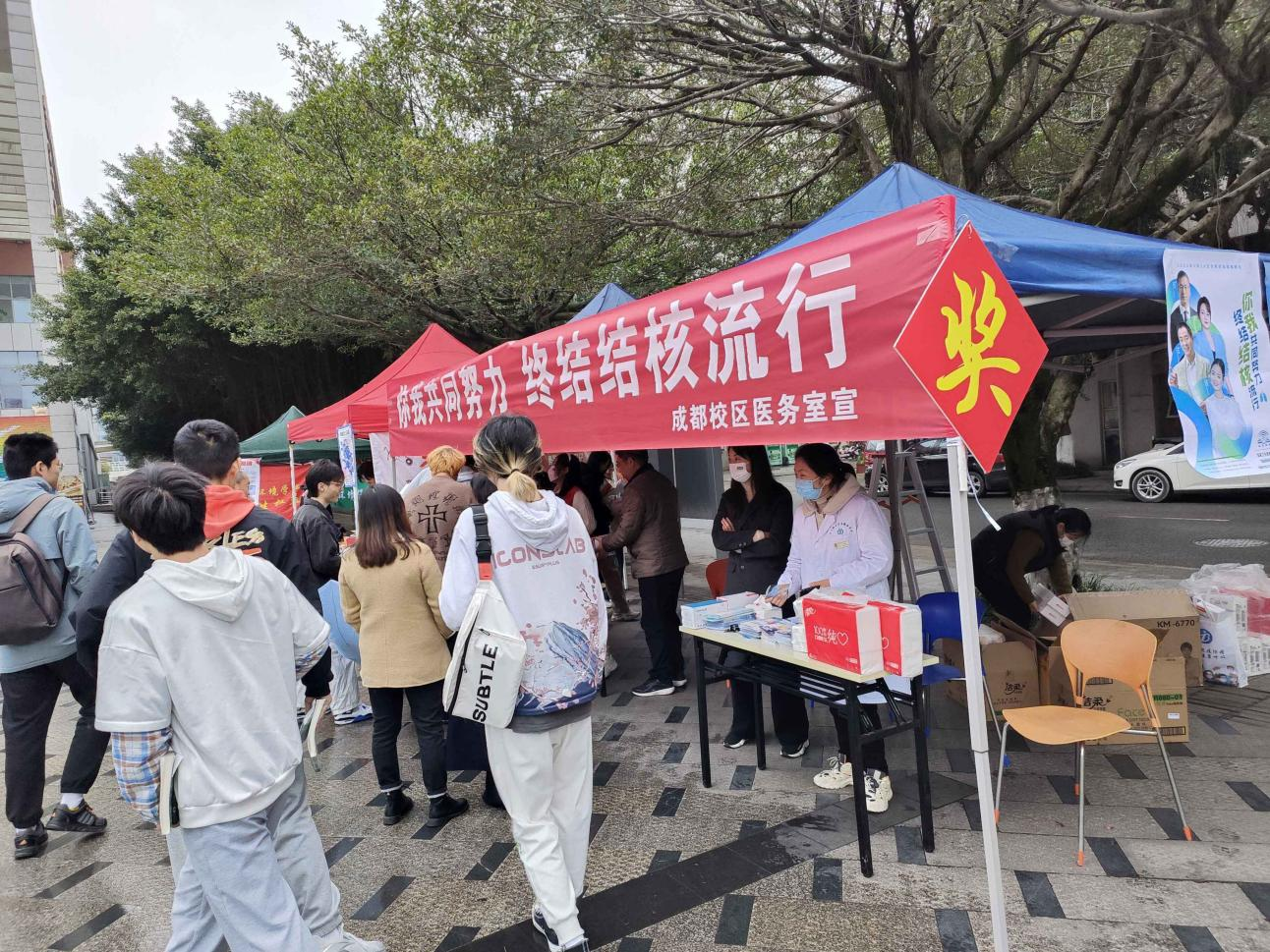 同日,二医院联合公平街道卫生服务中心、青春健康同伴社、爱心站等学生协会,在食堂外广场共同开展主题日现场宣传活动。通过发放宣传资料、有奖知识问答等多种形式吸引过往师生参与。同时,特邀温江区疾病预防控制中心的张波老师,为2022级新生100名骨干人员开展了结核病等传染病防治专题知识培训。