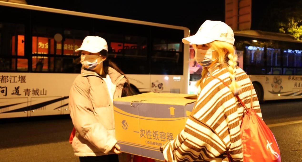 志愿者同学到岗进行物资搬运