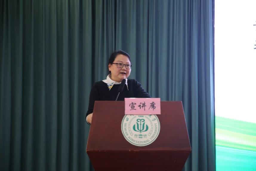 “‘川农大精神’它是顶天立地追卓越的精神!”黎明艳以《“川农大精神”传承人的印记》为题,通过回顾“川农大精神”的由来,分析“川农大精神”的内涵精髓,介绍其在全国的影响,带领师生加深对“川农大精神”的认识。她以作物学水稻研究为例,深情讲述了从杨开渠、周开达再到陈学伟、马均、黄富等三代川农人将“川农大精神”写在大地上的故事,号召广大师生在新征程中继续步履不停、砥砺奋进,让“川农大精神”在新时代继续得到践行与传承。