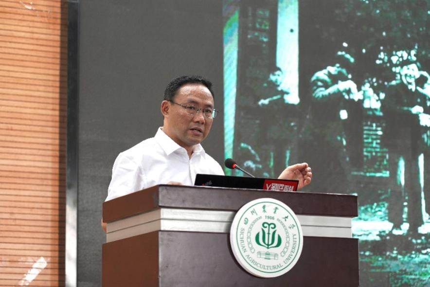 “川农大116年发展史是一部艰苦创业的奋斗史,是一部服务社会的奉献史,是一部大学精神的传承史,是一部从悲壮走向豪迈的逐梦史。”在都江堰校区,校党委副书记张强以《校史·“川农大精神”再探究》为题,借助丰富的史料、详实的事例、珍贵的历史照片,生动回顾了川农大百十余年发展的曲折历程和辉煌成就。他通过重点讲述迁雅独立建院、进入国家“211工程”重点建设行列等学校历史上的10件大事,引发听众关于“川农大精神”的思考。他指出,川农人的初心是兴中华之农事,川农大的使命是立德树人、兴农强国。希望大家传承“川农大精神”,成为知农爱农、兴农强农的新川农人,为“三农”事业、为乡村振兴做出更大贡献。