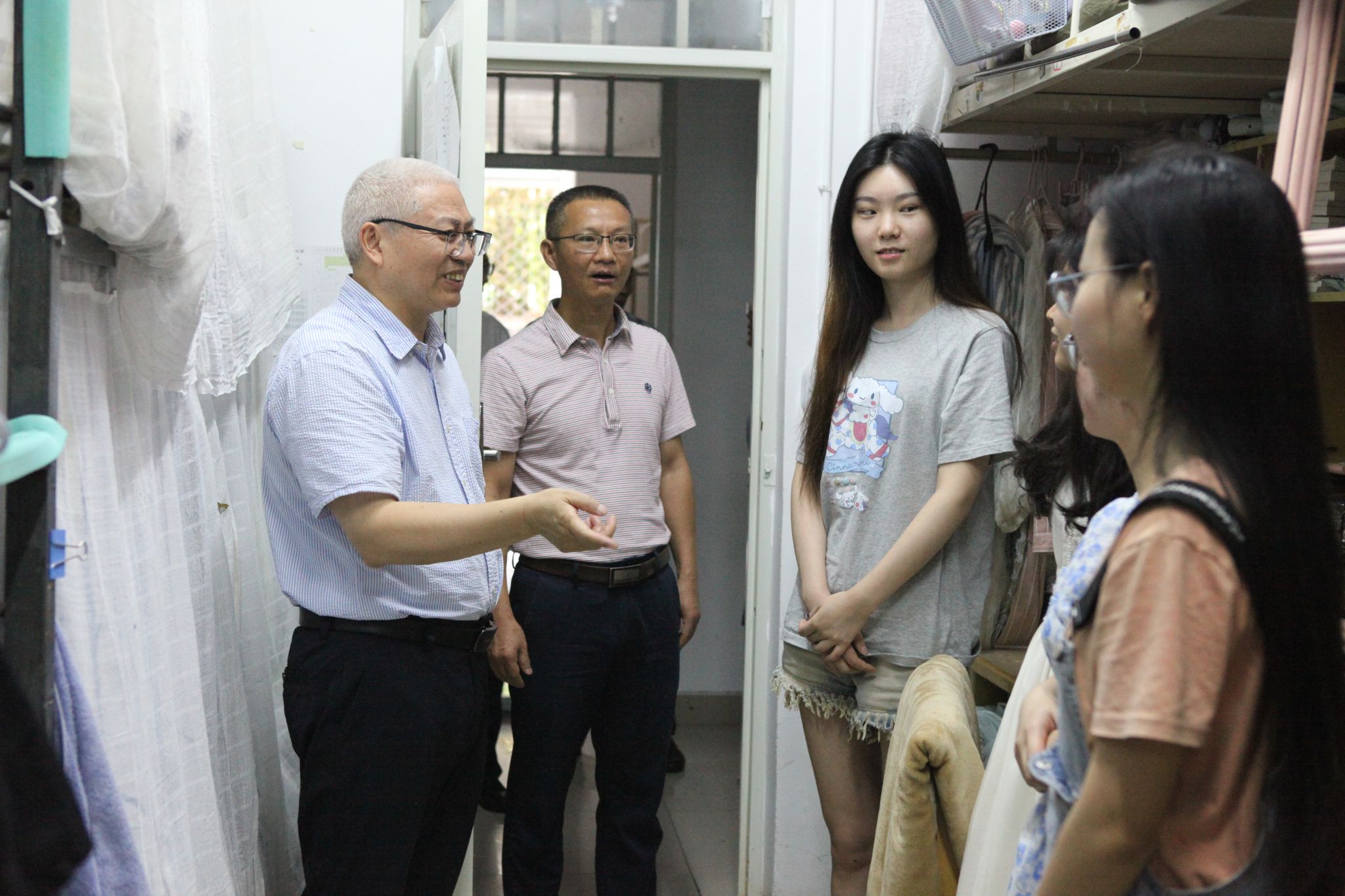 在学生宿舍,他对寝室热水、自助洗衣室、宿舍自习室等情况进行详细了解,与寝室同学、自习同学进行了亲切交谈。并为校区在近日的寝室搬迁过程中为同学们提供一对一搬迁服务点赞,要求校区尽最大可能为同学们提供舒适的住宿环境。
