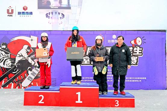 近日,由中国大学生体育协会主办、四川省大学生体育协会承办的首届中国大学生室内滑雪比赛在成都热雪奇迹举办。来自清华大学、吉林大学、哈尔滨工业大学、四川大学等25所全国高校200余名大学生参赛。我校6名学子在体育学院刘骞教授、都江堰校区基础教学部邸晓伟、郜普超老师的带领下喜获佳绩。经过激烈的角逐,土木工程学院何启扬同学获得女子单板滑雪亚军,商旅学院王芊芊同学获得高山大回转女子第五名,土木工程学院付天芮同学获得男子第六名,邸晓伟老师获得“优秀教练员”称号。
