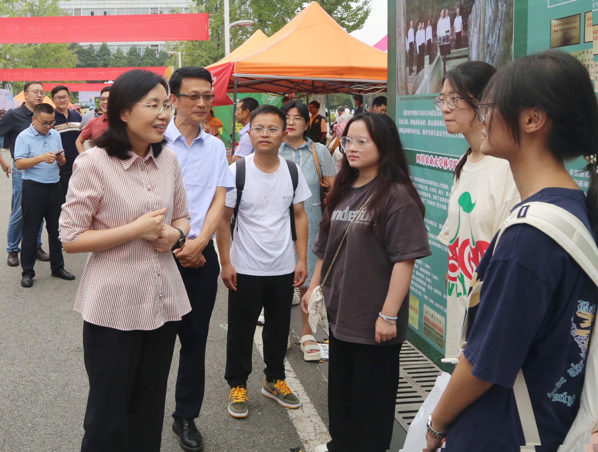 “同学,你家是哪里的?”“学什么专业?”“为什么喜欢这个专业?”校领导来到各学院报到点,与新生及家长亲切交谈,询问报到进展情况,并与新生及家长合影留念。
