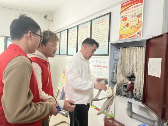 11月27日下午,都江堰市消防救援大队张可馨参谋一行到都江堰校区检查消防安全工作,校区综合管理办纪委书记、副主任秦之香,校区综合办保卫部相关人员陪同检查。