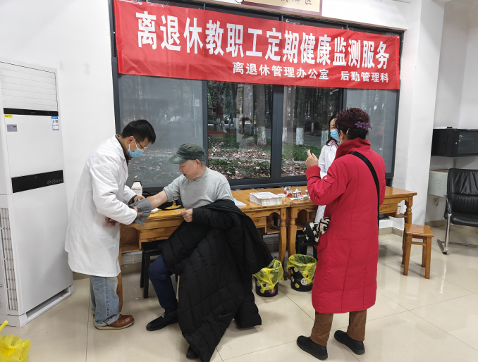 12月11日,都江堰校区综合办后勤管理科联合离退休管理办在离退休教职工活动中心,举办了“关爱离退休教职工”为主题的健康监测活动,为离退休教职工送去关爱。