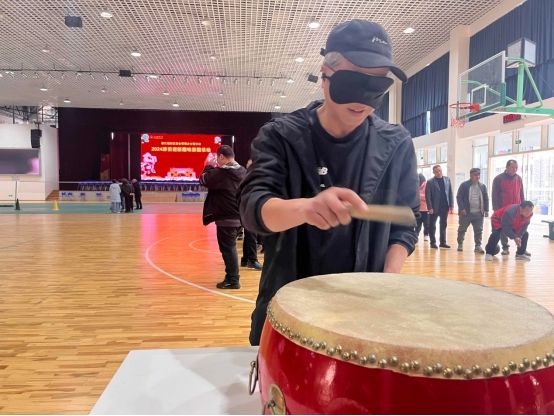 活动现场热闹非凡,在盲人敲鼓处,教职工戴上眼罩,原地转圈,拿棒去敲4米外的鼓,有人转完三圈后就找不到方向,跌跌撞撞越走越远,引得围观的教职工捧腹大笑。在欢乐投壶处,大家眯眼盯着远处的桶,用力投掷,有神投手把十根木箭都投到桶里,高兴到蹦起来,不论中与不中结果如何,大家都欢声笑语,既锻炼身体,又愉悦身心,让大家在投壶之余感受到中国传统体育的精神文化内涵。