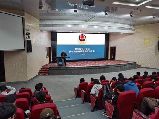 3月20日,都江堰校区综合管理办公室保卫部邀请都江堰市公安局南桥派出所吕鹏警官在图书馆报告厅为学生开展了“反诈防骗,共创平安”主题宣讲活动,近300名学生参加了此次活动。