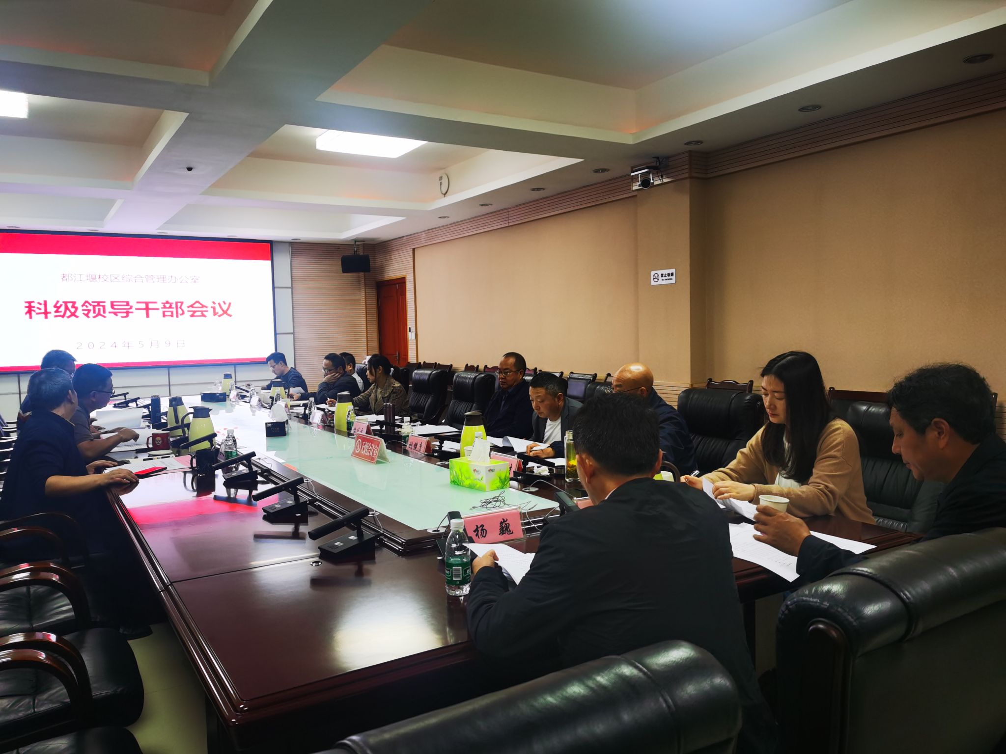 5月9日上午,都江堰校区综合管理办公室在5304召开科级干部会。综管办领导、全体科级干部参会,会议由综管办副主任秦之香主持。