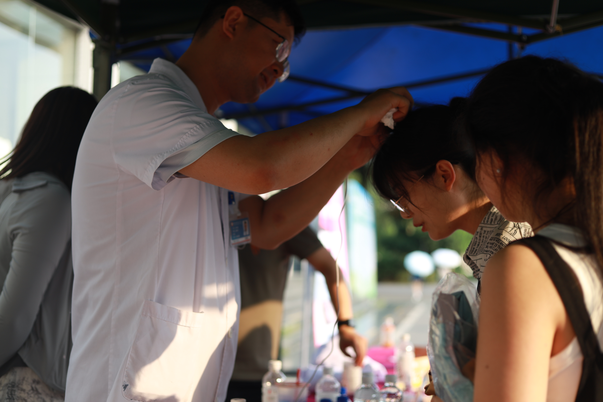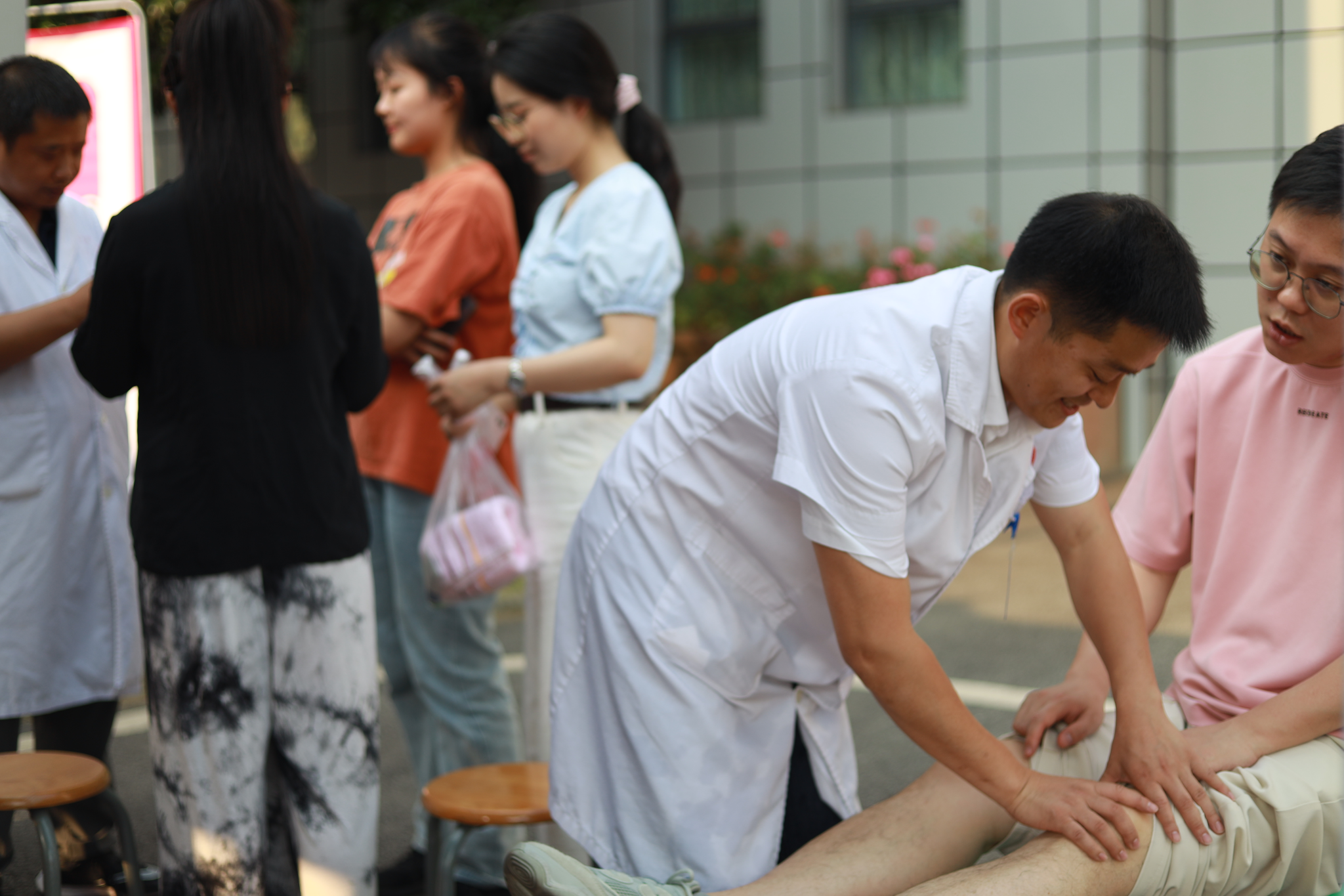 义诊活动在校区活动中心处设立了多个咨询区,包括骨科、消化内科、口腔科、皮肤科、康复科等。都江堰市人民医院的医生们为师生们提供了免费的健康咨询和诊疗服务。义诊现场,医生们耐心解答了师生们的各种健康问题,提供了专业的诊疗建议,并现场进行正骨治疗,普及了肌肉拉伸的方法及预防相关疾病的知识。师生们纷纷表示在校园内就可以解决自己的疑惑,很是方便,希望这类活动以后多开展。