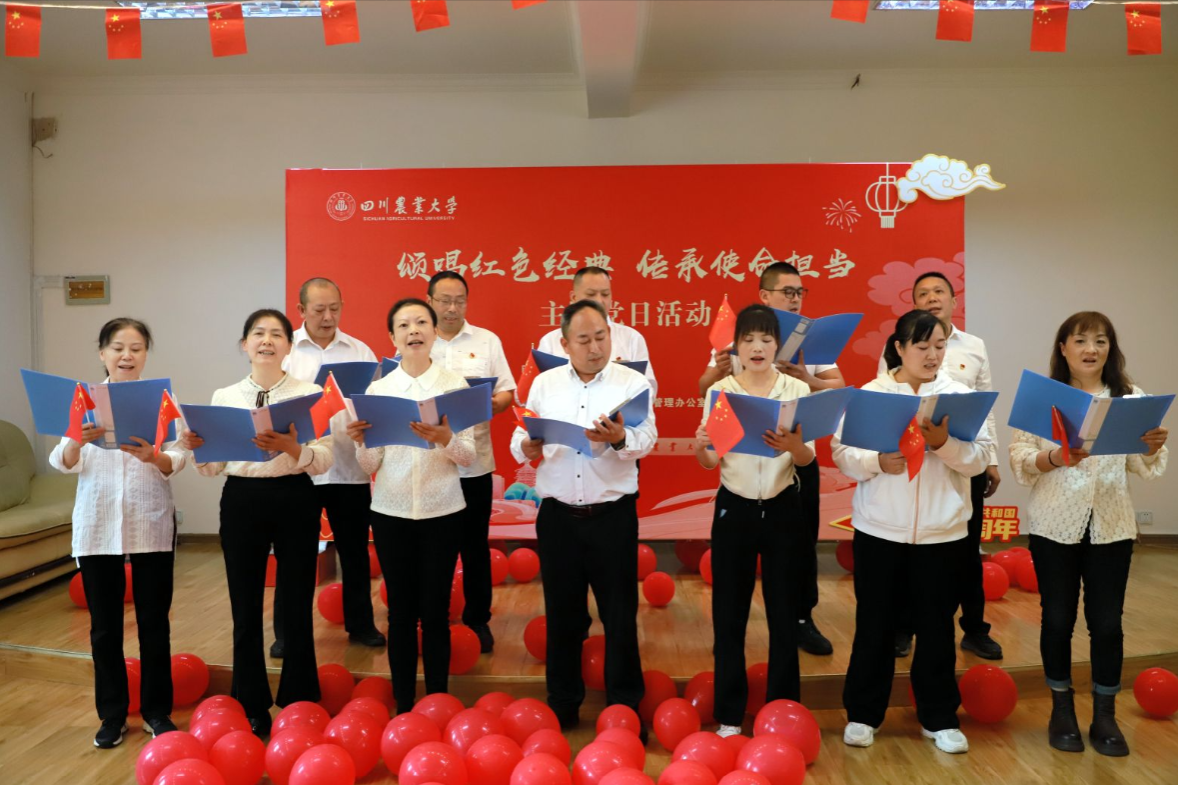为庆祝中华人民共和国成立75周年,弘扬爱国主义精神,增强全体党员的使命担当,10月15日下午,都江堰校区综合管理办公室党委在教职工活动中心开展“颂唱红色经典,传承使命担当”主题党日活动。