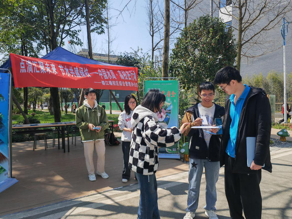 3月22日至28日,都江堰校区综管办以“点滴汇聚未来,节水共建绿校”为主题,开展第三十八届“中国水周”宣传活动。通过宣教与实践行动,引导师生关注水资源安全,践行节水理念,为绿色校园建设注入新活力。