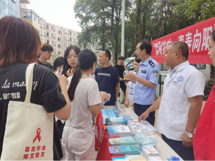 6月26日,为迎接第38个国际禁毒日,都江堰市疾病预防控制中心联合都江堰校区综管办共同开展“禁毒护航·青春向阳”防范青少年药物滥用主题宣传教育活动。本次活动以“珍爱生命、远离毒品、健康生活”为核心理念,通过多元化宣传形式向青少年群体普及禁毒防艾知识,助力平安校园建设。