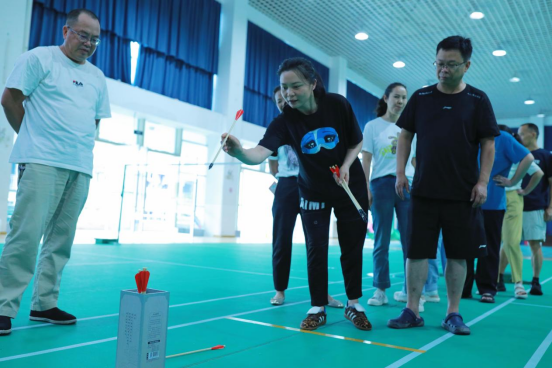本次趣味活动精心设计了“定点投篮”、“左中右反应力挑战”、“快乐夹球”和“原地踏步走挑战”等八个趣味性项目,旨在让职工们在轻松愉快的氛围中放松身心、增进交流。“定点投篮”区域,参与者们屏息凝神,专注瞄准篮筐。无论是经验丰富的老将,还是初次尝试的新手,每一次篮球划出弧线,都伴随着场边同事的加油喝彩,进球瞬间更是引来阵阵欢呼。“左中右反应力挑战”考验着职工们的敏捷与应变能力。面对工作人员的随机口令,参与者们需要迅速做出判断并向相反方向移动。活动中,有人反应神速,有人手忙脚乱,引得围观者笑声不断。参与职工们全情投入,暂时放下了工作的繁忙,尽情享受运动带来的快乐。后管科万宇菲兴奋地说:“活动太有意思了,项目设计得好玩又不会太难,大家玩得很开心,感觉同事间的距离一下子拉近了!”