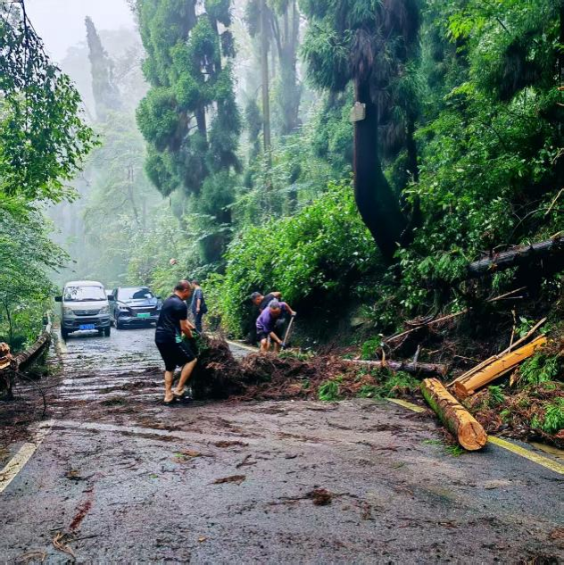 7月4日晚,都江堰地区遭遇持续暴雨,并伴有雷电、大风,我校都江堰校区教学科研基地灵岩山实习森林林区交通要道突发多重险情:从进山入口起到山脊的林区公路边有近20余处的大树甚至胸径超半米的参天巨树被狂风连根拔起倒伏于公路上;有1处山体滑坡,山洪裹挟泥沙、石头倾泻冲至公路,路面淤泥覆盖最深至50厘米......。接到险情后,校区综管办紧急行动,全力抢险。
